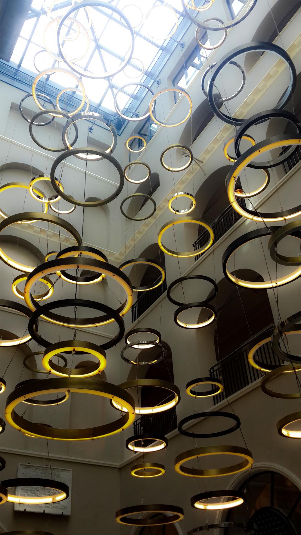Avize, tavandan asılan, şamdan veya ampullü, cam veya metalden dekoratif aydınlatma aracı.